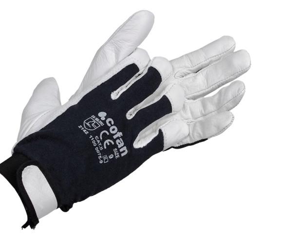 Guante de piel flor vacuno natural mixto (dorso tela, palma piel).